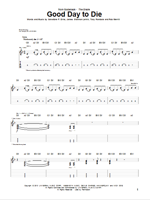 Download or print Godsmack Good Day To Die sheet music, chords and digital score arranged for Guitar Tab. This Metal score includes 8 page(s).