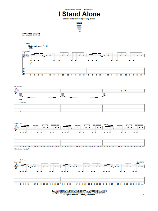 Download or print Godsmack I Stand Alone sheet music, chords and digital score arranged for Guitar Tab. This Metal score includes 9 page(s).