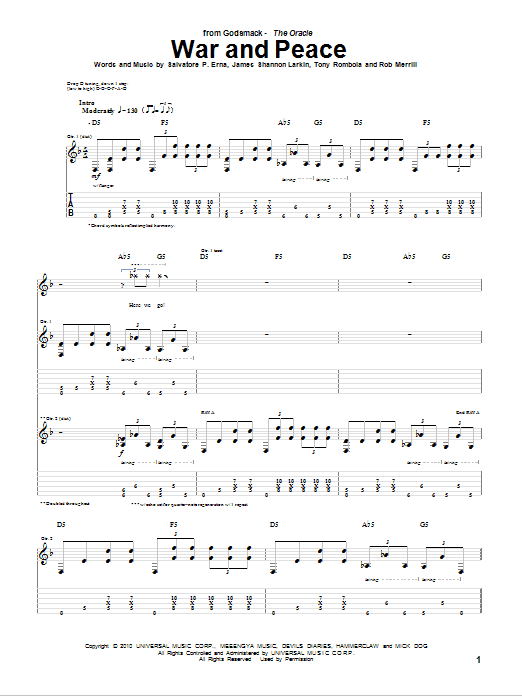 Download or print Godsmack War And Peace sheet music, chords and digital score arranged for Guitar Tab. This Metal score includes 5 page(s).