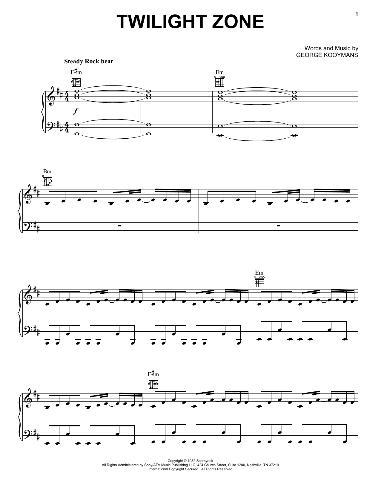 Download or print Golden Earring Twilight Zone sheet music, chords and digital score arranged for Piano, Vocal & Guitar Chords (Right-Hand Melody). This Pop score includes 7 page(s).