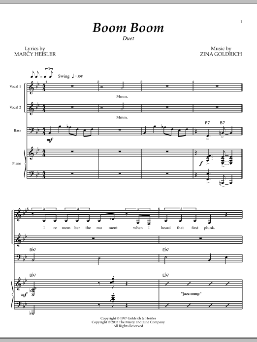 Download or print Goldrich & Heisler Boom Boom sheet music, chords and digital score arranged for Piano & Vocal. This Broadway score includes 8 page(s).