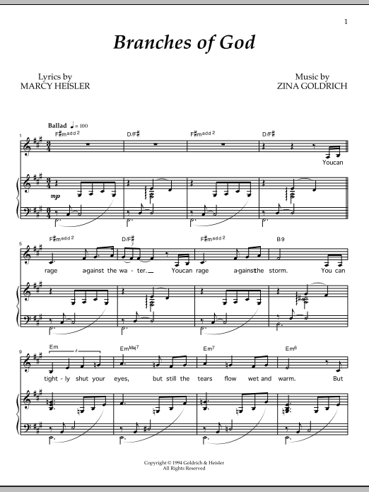 Download or print Goldrich & Heisler Branches Of God sheet music, chords and digital score arranged for Piano & Vocal. This Broadway score includes 8 page(s).