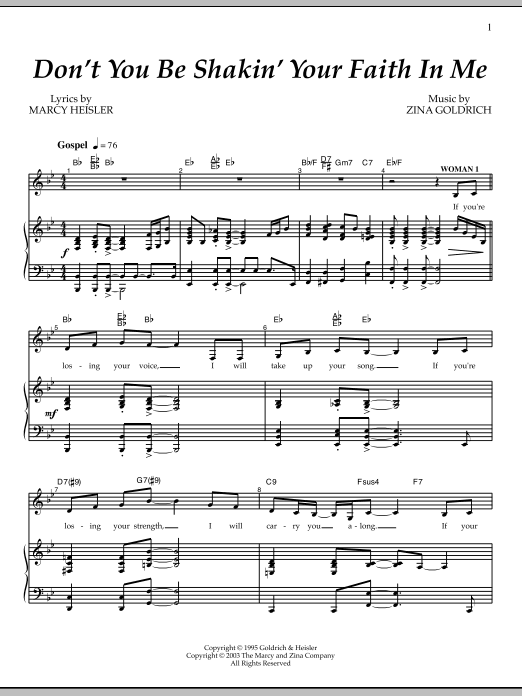 Download or print Goldrich & Heisler Don't You Be Shakin' Your Faith In Me sheet music, chords and digital score arranged for Piano & Vocal. This Broadway score includes 8 page(s).
