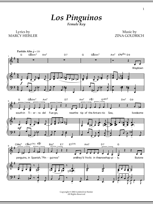 Download or print Goldrich & Heisler Los Pinguinos (Female Key) sheet music, chords and digital score arranged for Piano & Vocal. This Broadway score includes 5 page(s).