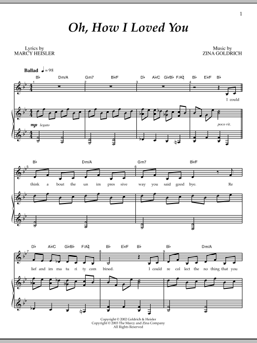 Download or print Goldrich & Heisler Oh, How I Loved You sheet music, chords and digital score arranged for Piano & Vocal. This Broadway score includes 8 page(s).