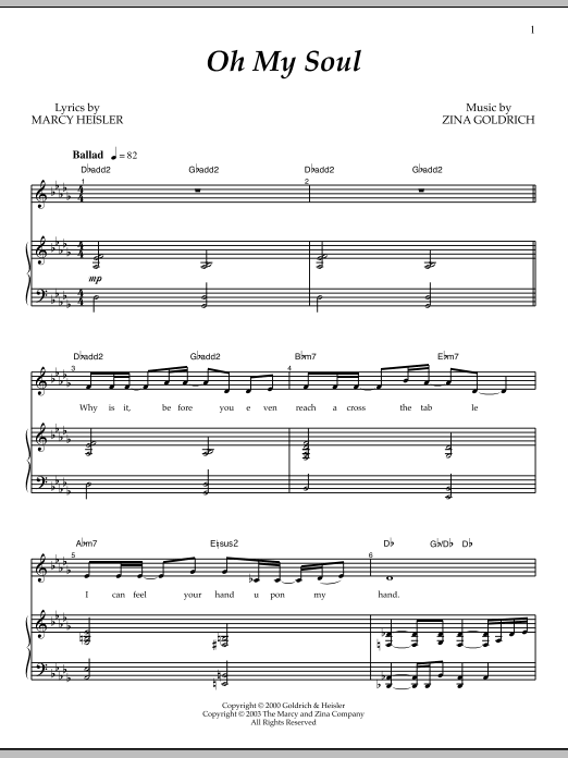 Download or print Goldrich & Heisler Oh My Soul sheet music, chords and digital score arranged for Piano & Vocal. This Broadway score includes 8 page(s).