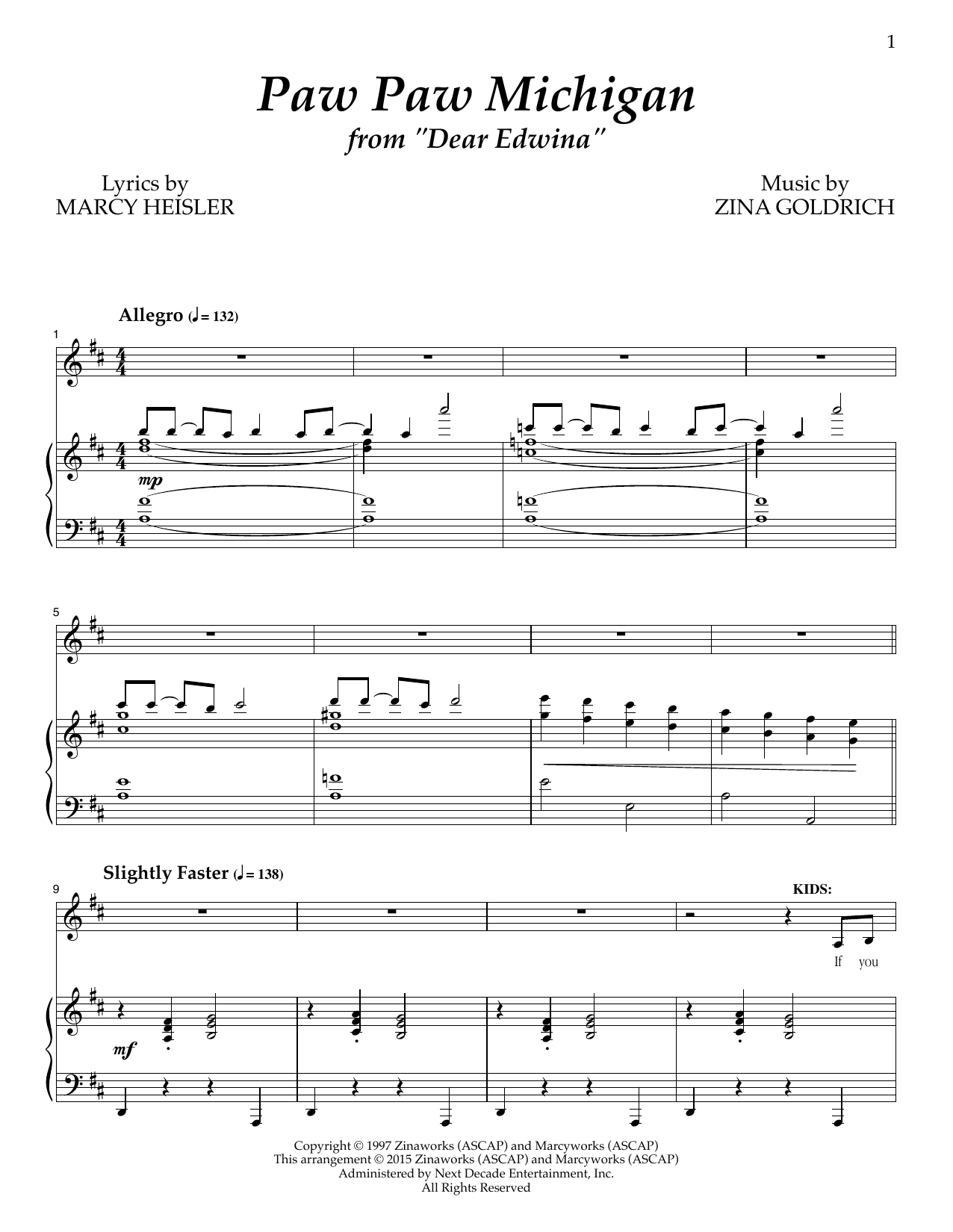 Download or print Goldrich & Heisler Paw Paw Michigan sheet music, chords and digital score arranged for Piano & Vocal. This Musical/Show score includes 6 page(s).