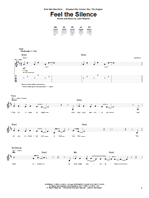 Download or print Goo Goo Dolls Feel The Silence sheet music, chords and digital score arranged for Guitar Tab. This Pop score includes 7 page(s).