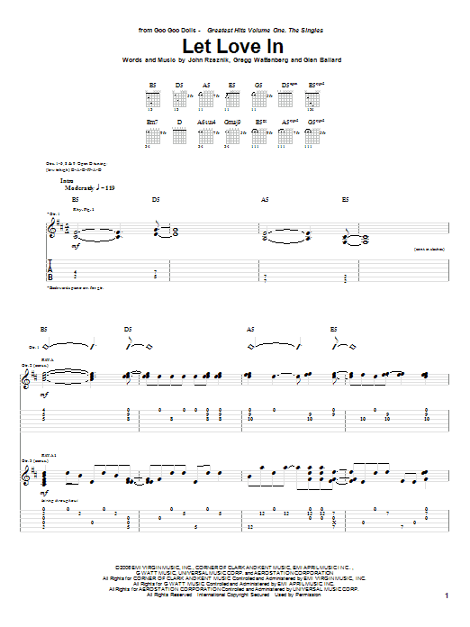 Download or print Goo Goo Dolls Let Love In sheet music, chords and digital score arranged for Guitar Tab. This Pop score includes 14 page(s).