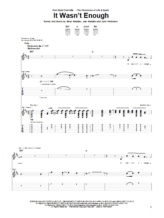 Download or print Good Charlotte It Wasn't Enough sheet music, chords and digital score arranged for Guitar Tab. This Metal score includes 10 page(s).
