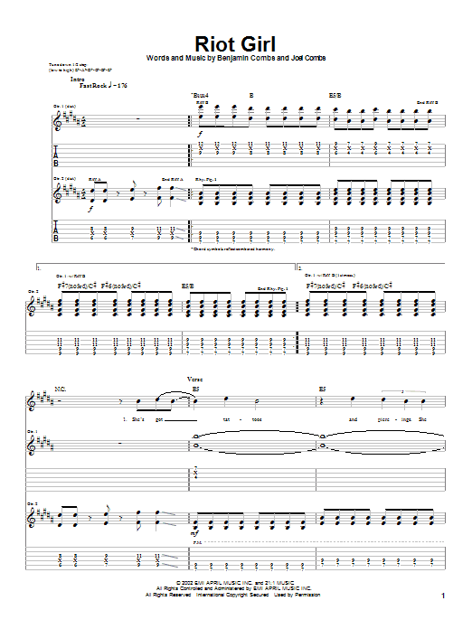 Download or print Good Charlotte Riot Girl sheet music, chords and digital score arranged for Guitar Tab. This Rock score includes 7 page(s).