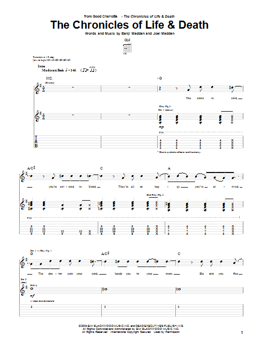 Download or print Good Charlotte The Chronicles Of Life & Death sheet music, chords and digital score arranged for Guitar Tab. This Metal score includes 7 page(s).