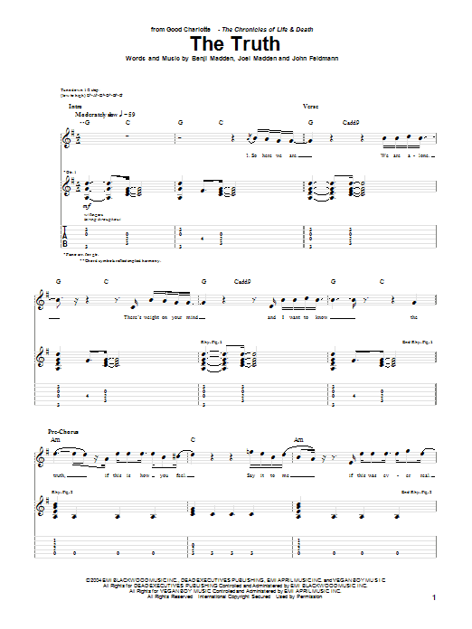 Download or print Good Charlotte The Truth sheet music, chords and digital score arranged for Guitar Tab. This Metal score includes 5 page(s).
