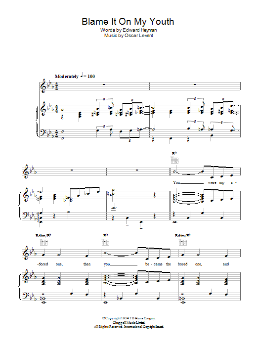 Download or print Gordon MacRae Blame It On My Youth sheet music, chords and digital score arranged for Piano, Vocal & Guitar Chords. This Jazz score includes 5 page(s).