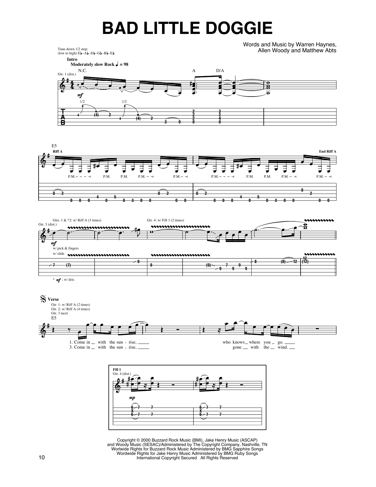 Download or print Gov't Mule Bad Little Doggie sheet music, chords and digital score arranged for Guitar Tab. This Rock score includes 7 page(s).