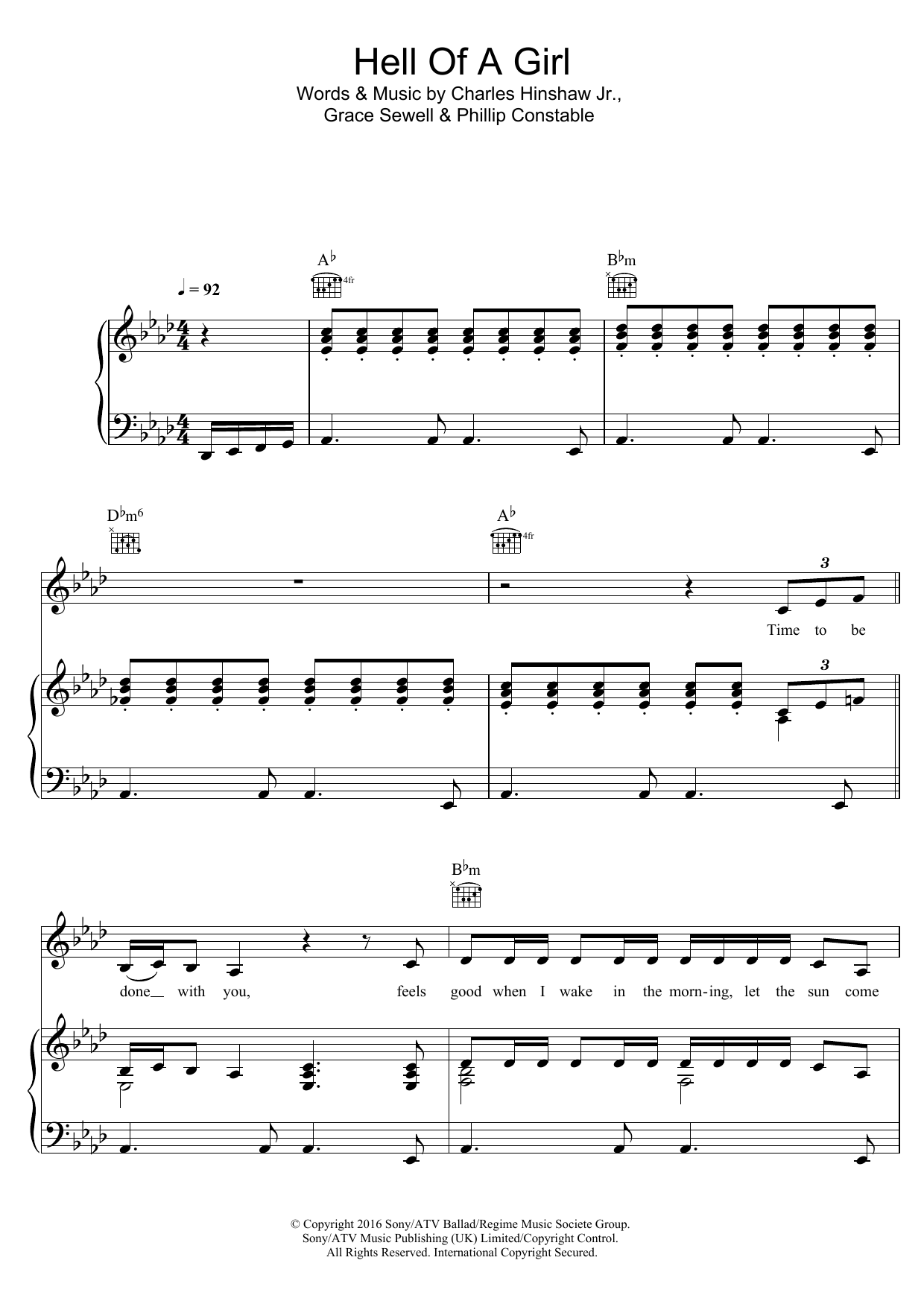 Download or print Grace Hell Of A Girl sheet music, chords and digital score arranged for Piano, Vocal & Guitar Chords. This Pop score includes 8 page(s).