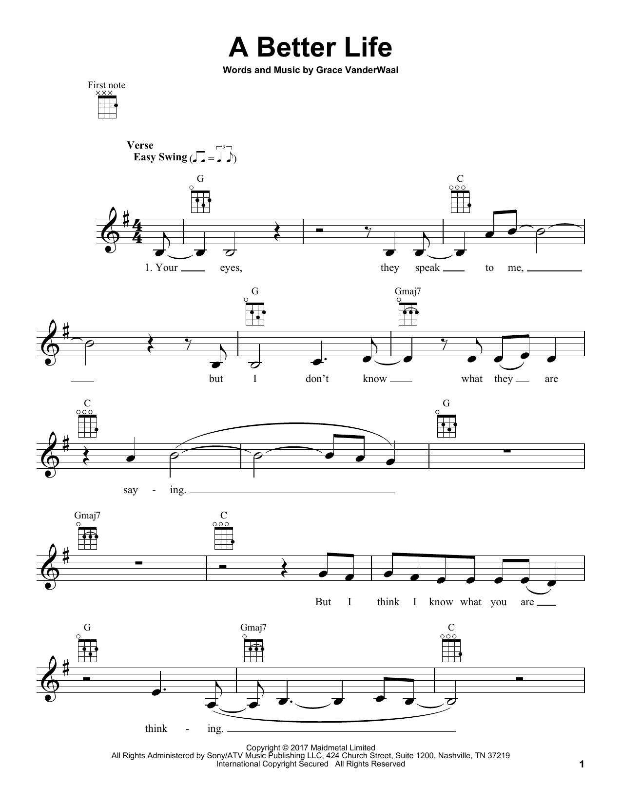 Download or print Grace VanderWaal A Better Life sheet music, chords and digital score arranged for Easy Piano. This Pop score includes 7 page(s).