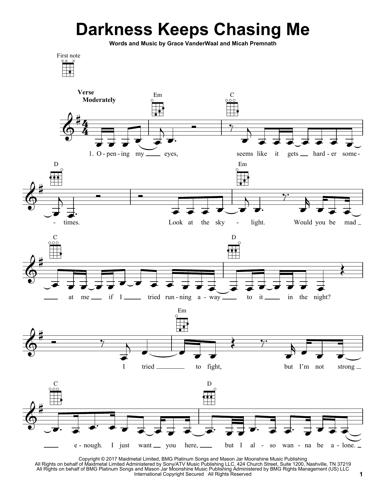 Download or print Grace VanderWaal Darkness Keeps Chasing Me sheet music, chords and digital score arranged for Easy Piano. This Pop score includes 9 page(s).
