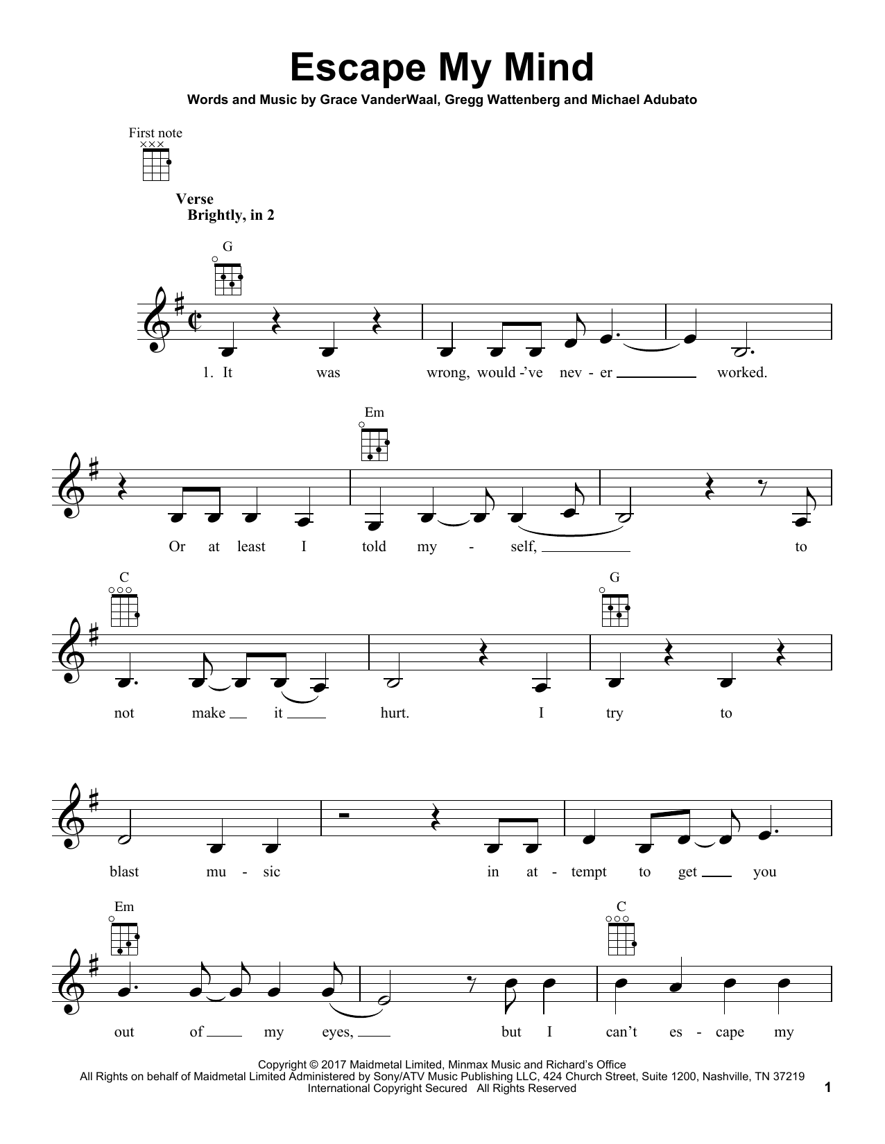 Download or print Grace VanderWaal Escape My Mind sheet music, chords and digital score arranged for Easy Piano. This Pop score includes 9 page(s).