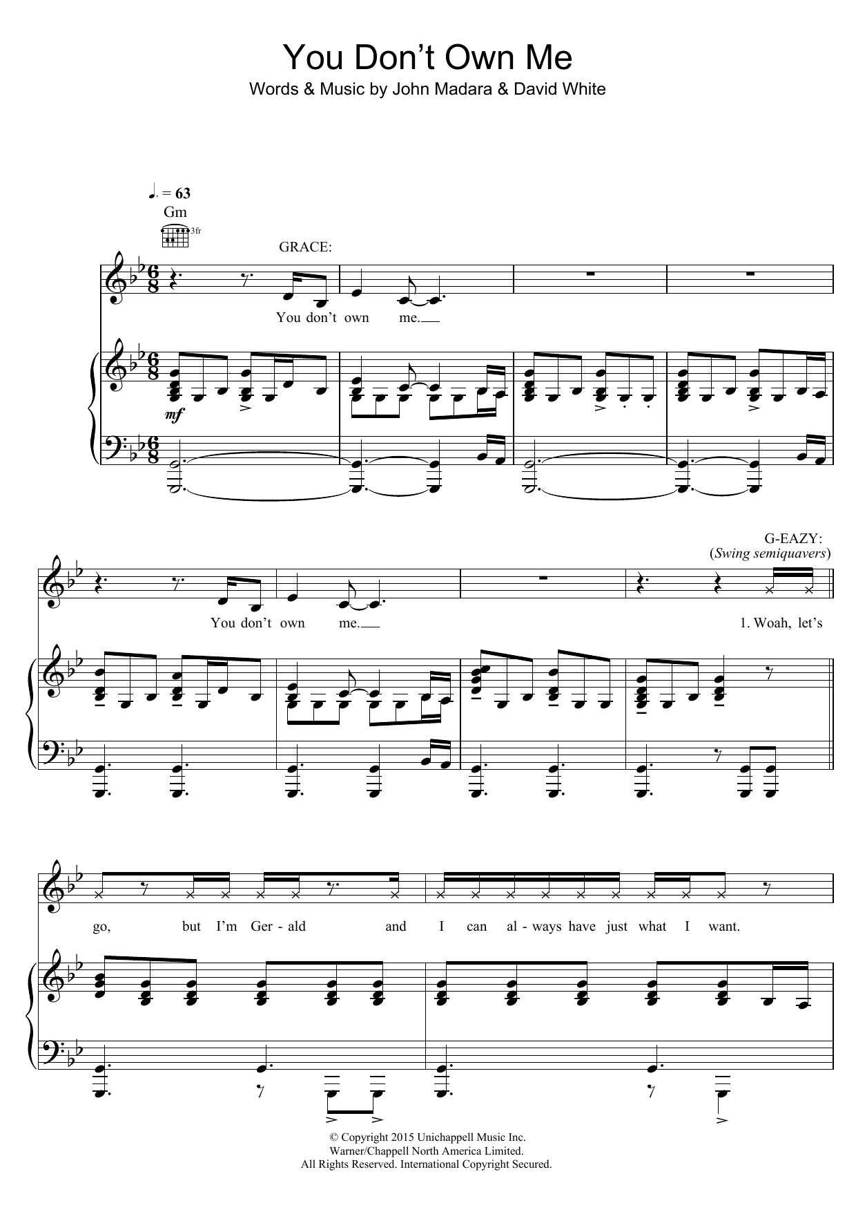 Download or print Grace You Don't Own Me (featuring G-Eazy) sheet music, chords and digital score arranged for Piano, Vocal & Guitar Chords. This Alternative score includes 8 page(s).