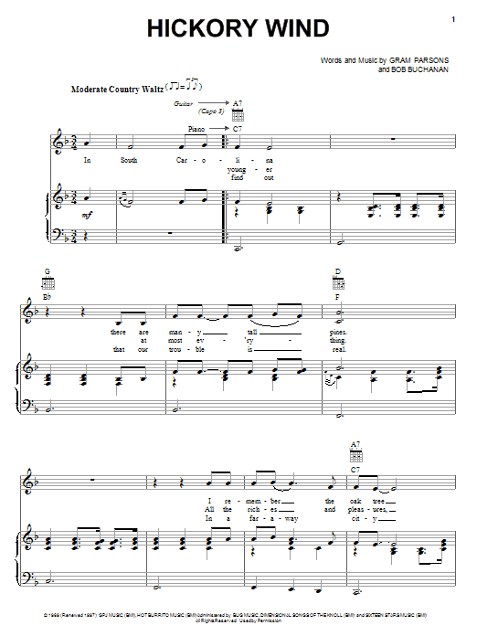 Download or print Gram Parsons Hickory Wind sheet music, chords and digital score arranged for Piano, Vocal & Guitar Chords (Right-Hand Melody). This Country score includes 4 page(s).