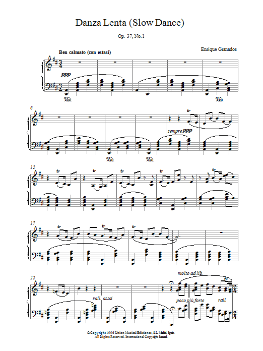 Download or print Enrique Granados Danza Lenta Op37 No1 sheet music, chords and digital score arranged for Piano Solo. This Classical score includes 3 page(s).