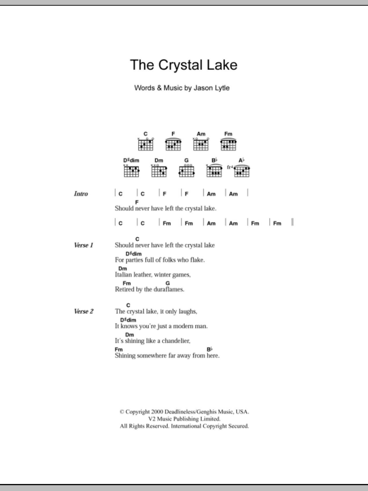 Download or print Grandaddy The Crystal Lake sheet music, chords and digital score arranged for Guitar Chords/Lyrics. This Rock score includes 2 page(s).