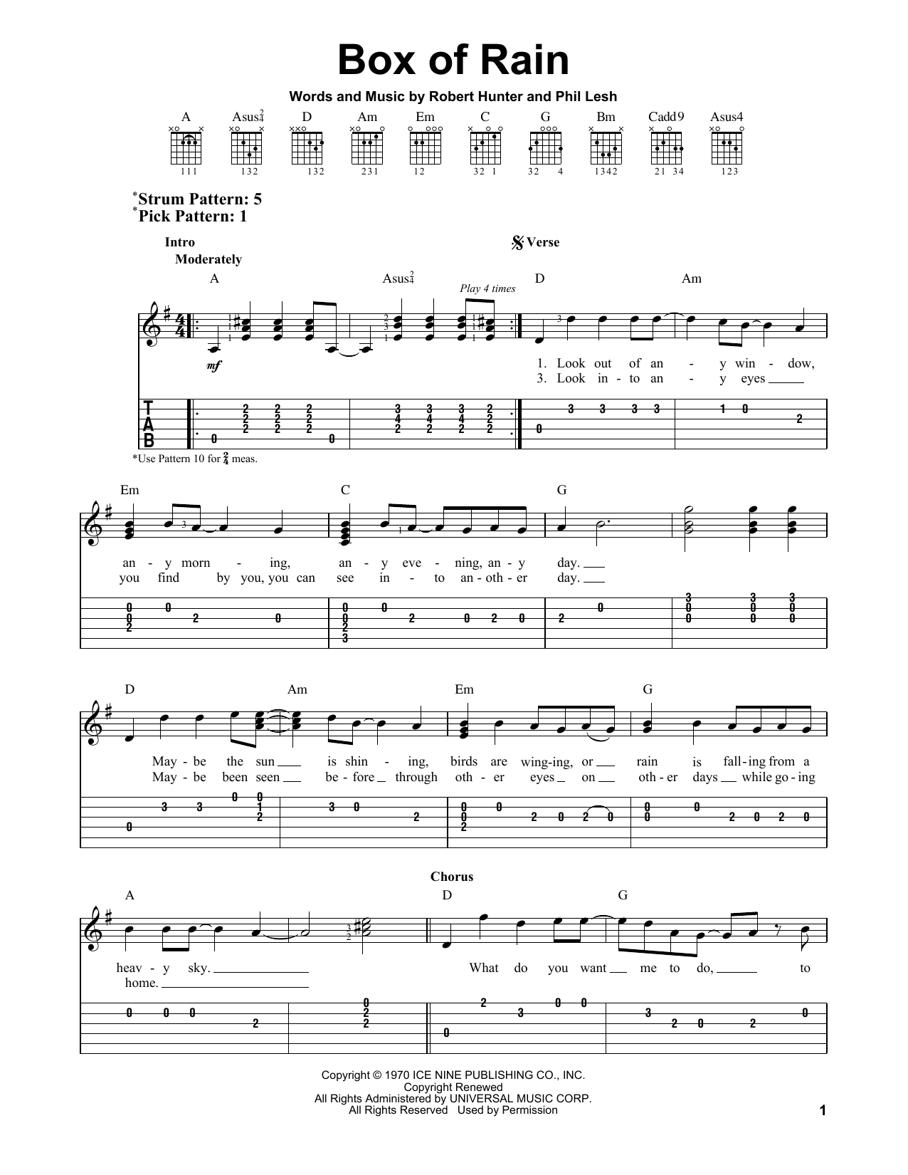 Download or print Grateful Dead Box Of Rain sheet music, chords and digital score arranged for Guitar Tab. This Pop score includes 16 page(s).