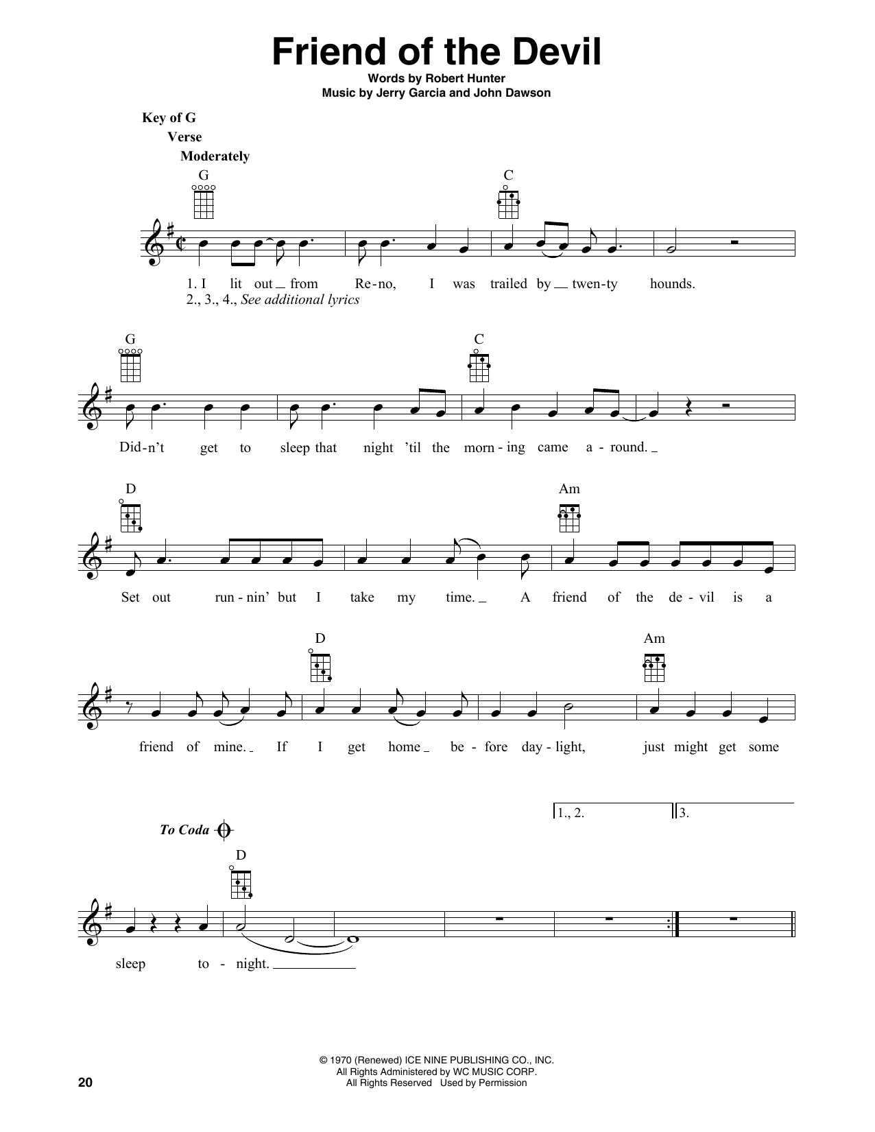 Download or print Grateful Dead Friend Of The Devil (arr. Fred Sokolow) sheet music, chords and digital score arranged for Banjo Tab. This Rock score includes 2 page(s).