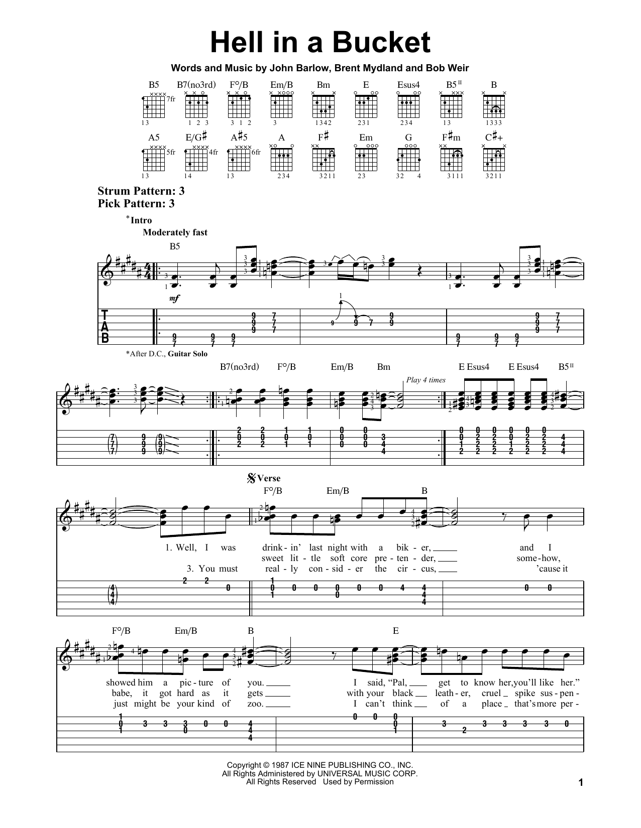 Download or print Grateful Dead Hell In A Bucket sheet music, chords and digital score arranged for Easy Guitar Tab. This Pop score includes 4 page(s).