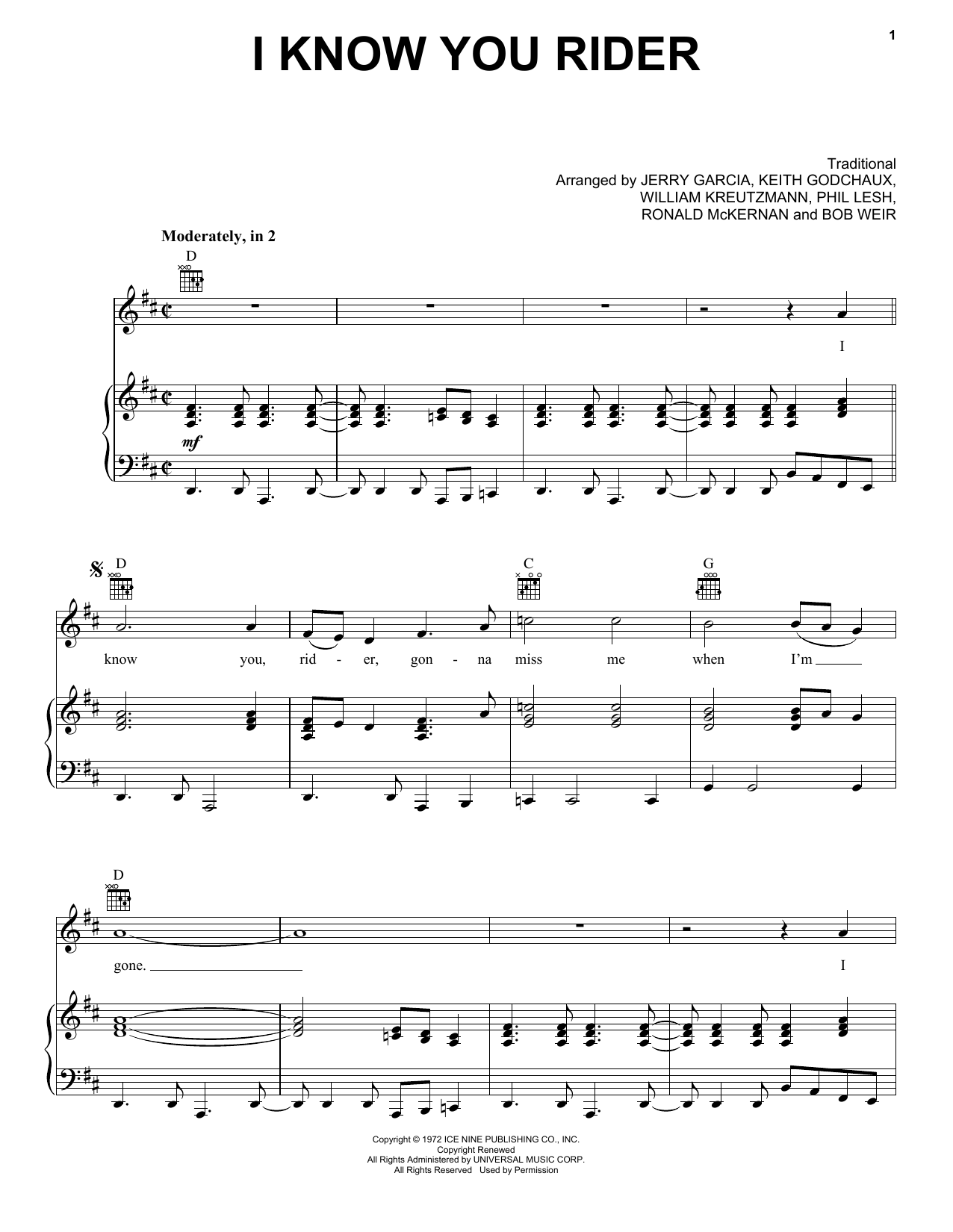 Download or print Grateful Dead I Know You Rider sheet music, chords and digital score arranged for Guitar Tab. This Pop score includes 24 page(s).
