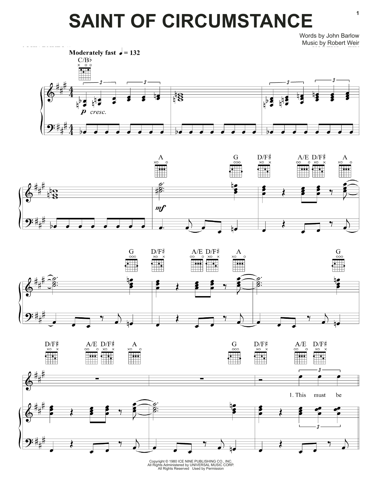 Download or print Grateful Dead Saint Of Circumstance sheet music, chords and digital score arranged for Piano, Vocal & Guitar Chords (Right-Hand Melody). This Folk score includes 10 page(s).