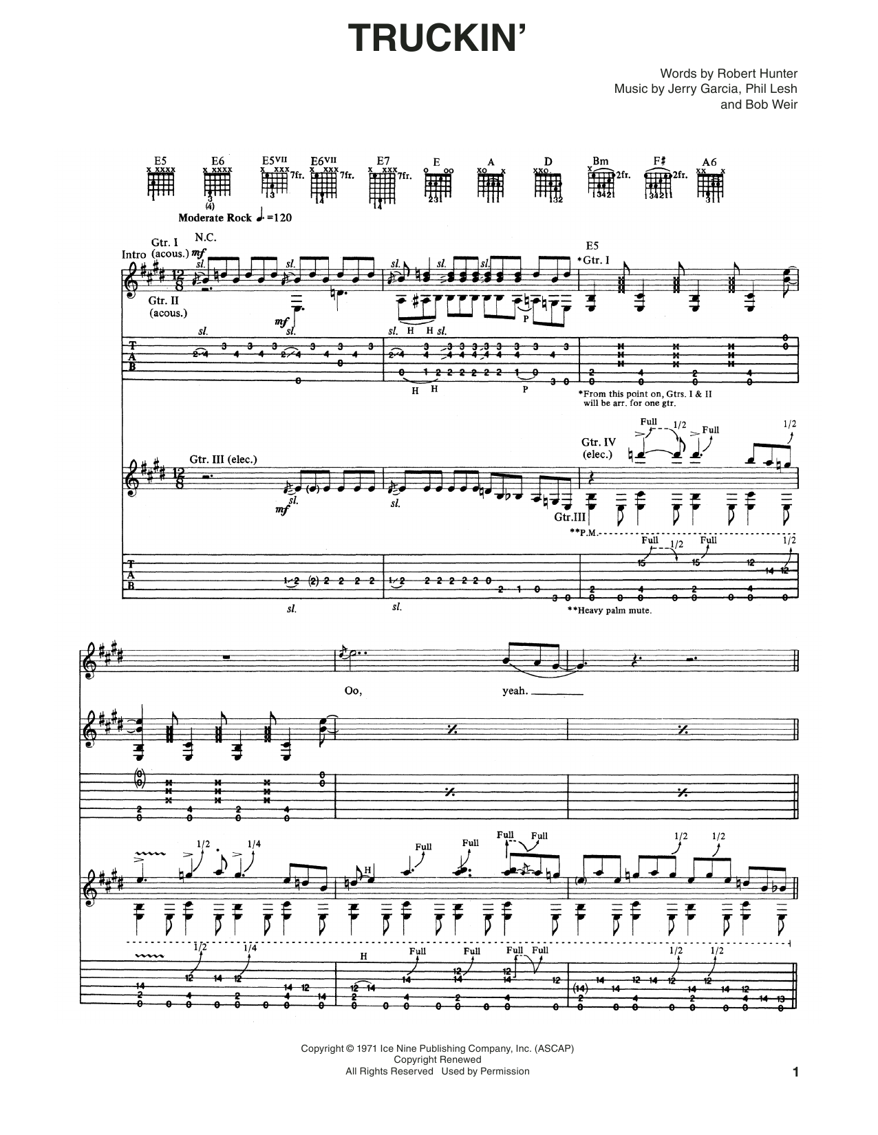 Download or print Grateful Dead Truckin' sheet music, chords and digital score arranged for Easy Piano. This Pop score includes 10 page(s).