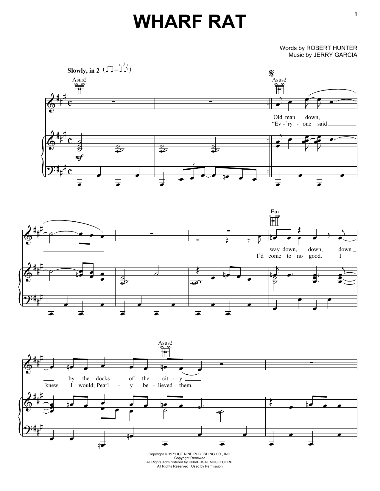 Download or print Grateful Dead Wharf Rat sheet music, chords and digital score arranged for Piano, Vocal & Guitar Chords (Right-Hand Melody). This Pop score includes 9 page(s).