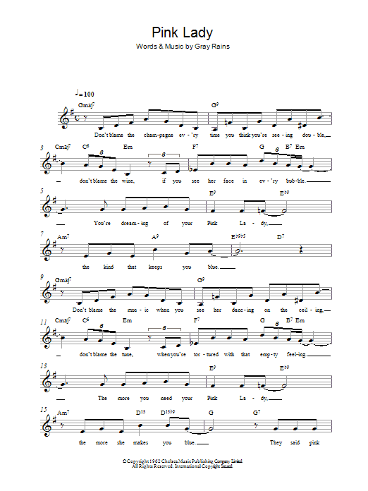 Download or print Gray Rains Pink Lady sheet music, chords and digital score arranged for Lead Sheet / Fake Book. This Standards score includes 2 page(s).