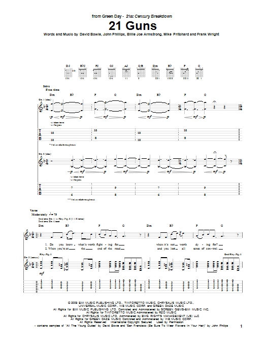 Download or print Green Day 21 Guns sheet music, chords and digital score arranged for Really Easy Guitar. This Rock score includes 2 page(s).