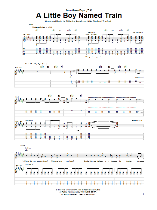 Download or print Green Day A Little Boy Named Train sheet music, chords and digital score arranged for Guitar Tab. This Pop score includes 6 page(s).