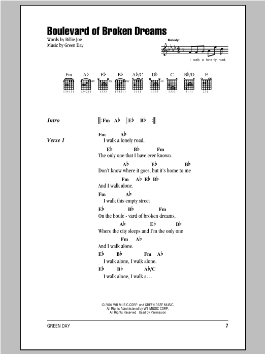 Quick facts Boulevard Of Broken Dreams about digital sheet music