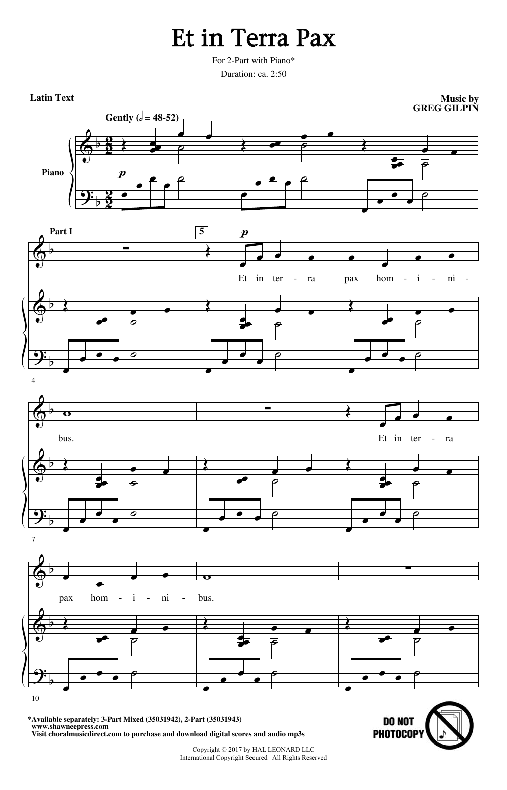 Download or print Greg Gilpin Et In Terra Pax sheet music, chords and digital score arranged for 3-Part Mixed Choir. This Concert score includes 10 page(s).