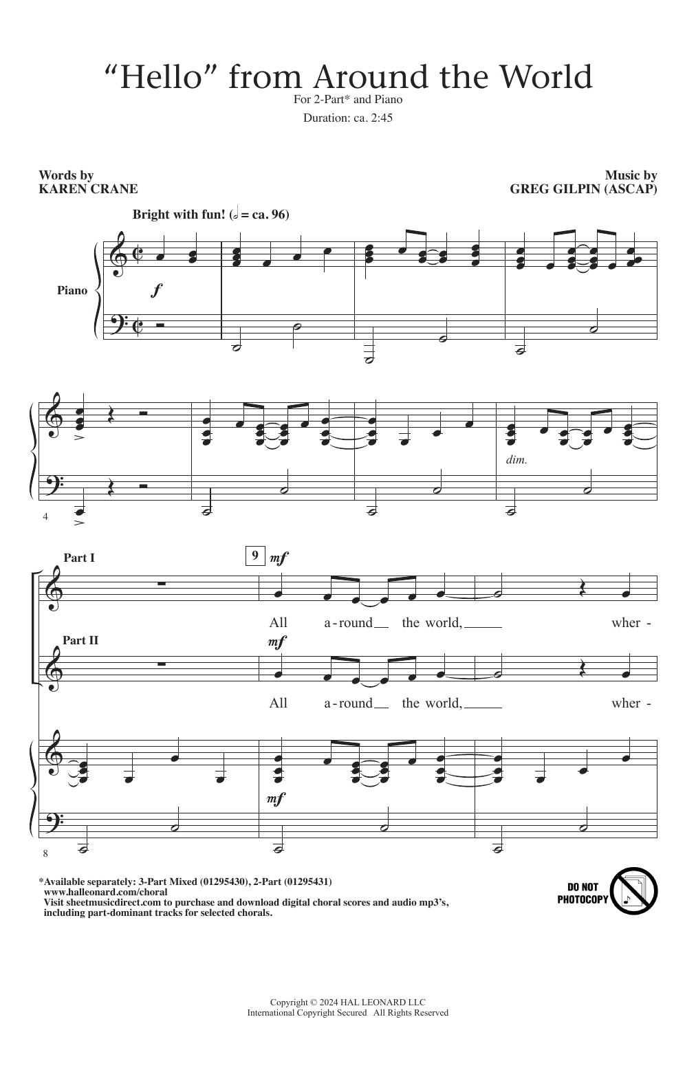Download or print Greg Gilpin "Hello" From Around The World sheet music, chords and digital score arranged for 3-Part Mixed Choir. This Concert score includes 15 page(s).