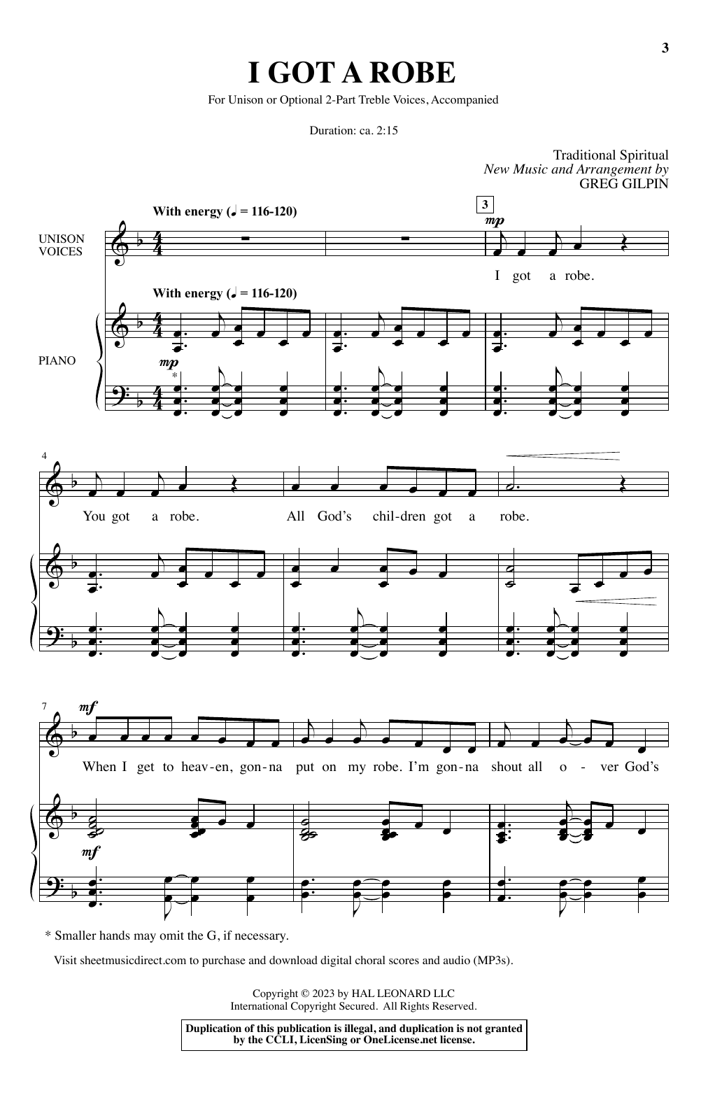 Download or print Greg Gilpin I Got A Robe sheet music, chords and digital score arranged for Choir. This Concert score includes 8 page(s).