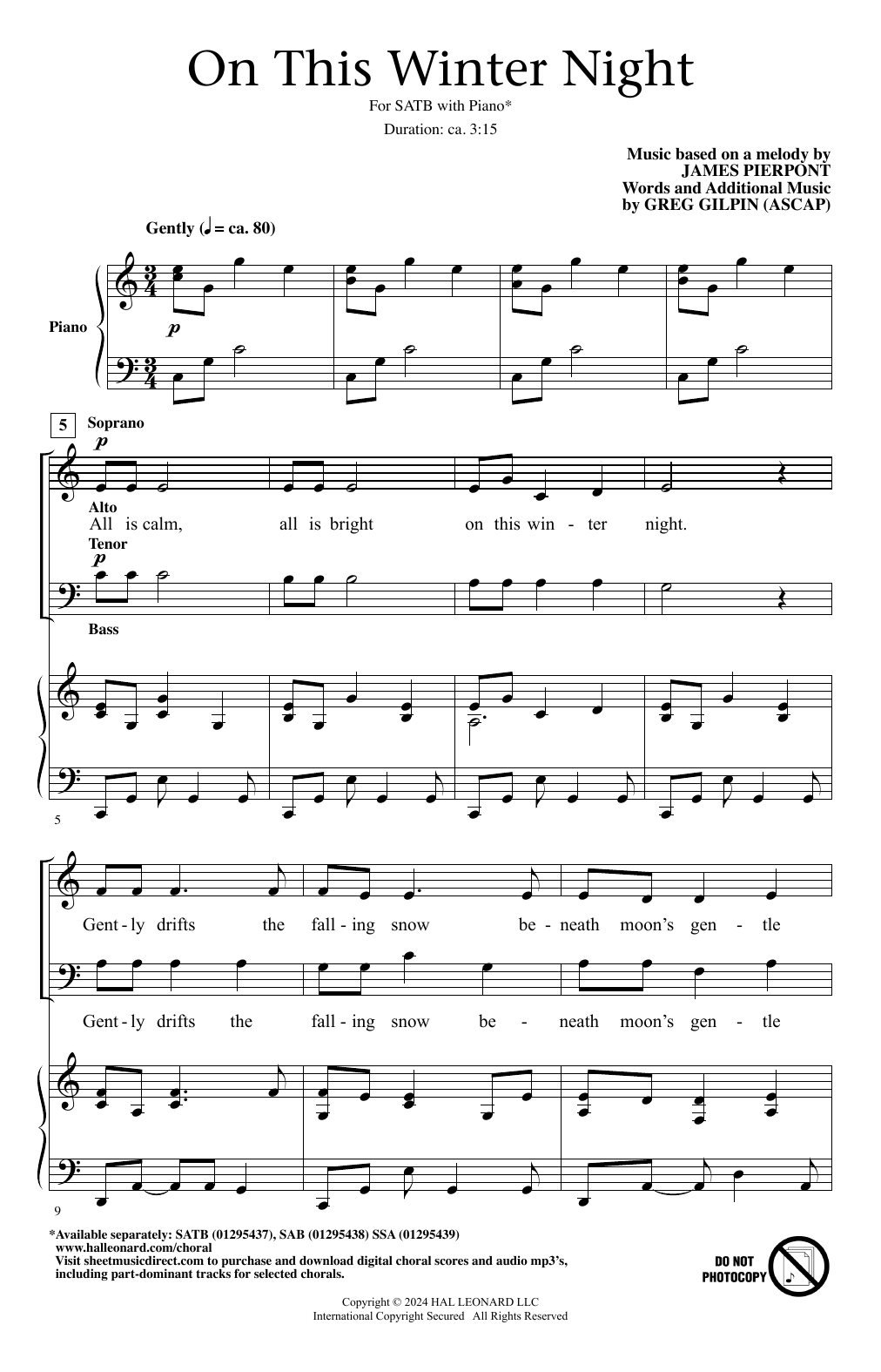 Download or print Greg Gilpin On This Winter Night sheet music, chords and digital score arranged for SATB Choir. This Winter score includes 9 page(s).