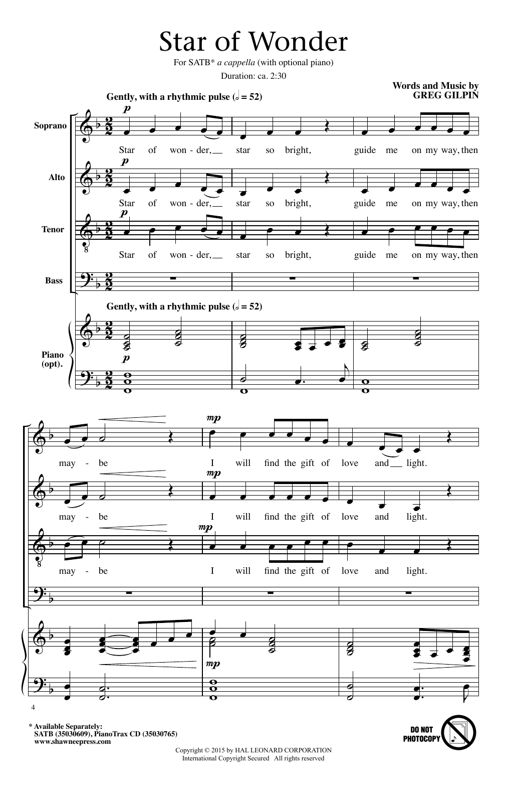 Download or print Greg Gilpin Star Of Wonder sheet music, chords and digital score arranged for TB Choir. This Concert score includes 7 page(s).