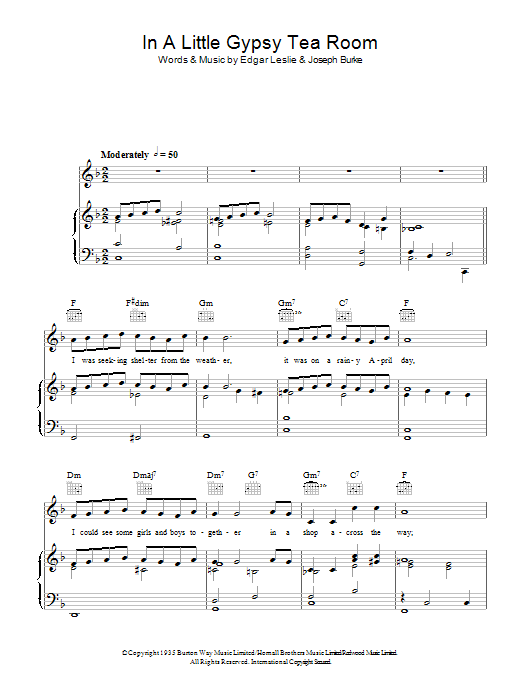 Download or print Greta Keller In A Little Gypsy Tea Room sheet music, chords and digital score arranged for Piano, Vocal & Guitar Chords. This Traditional score includes 4 page(s).