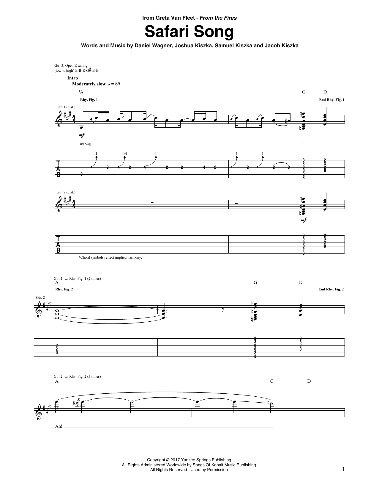 Download or print Greta Van Fleet Safari Song sheet music, chords and digital score arranged for Guitar Tab. This Rock score includes 8 page(s).