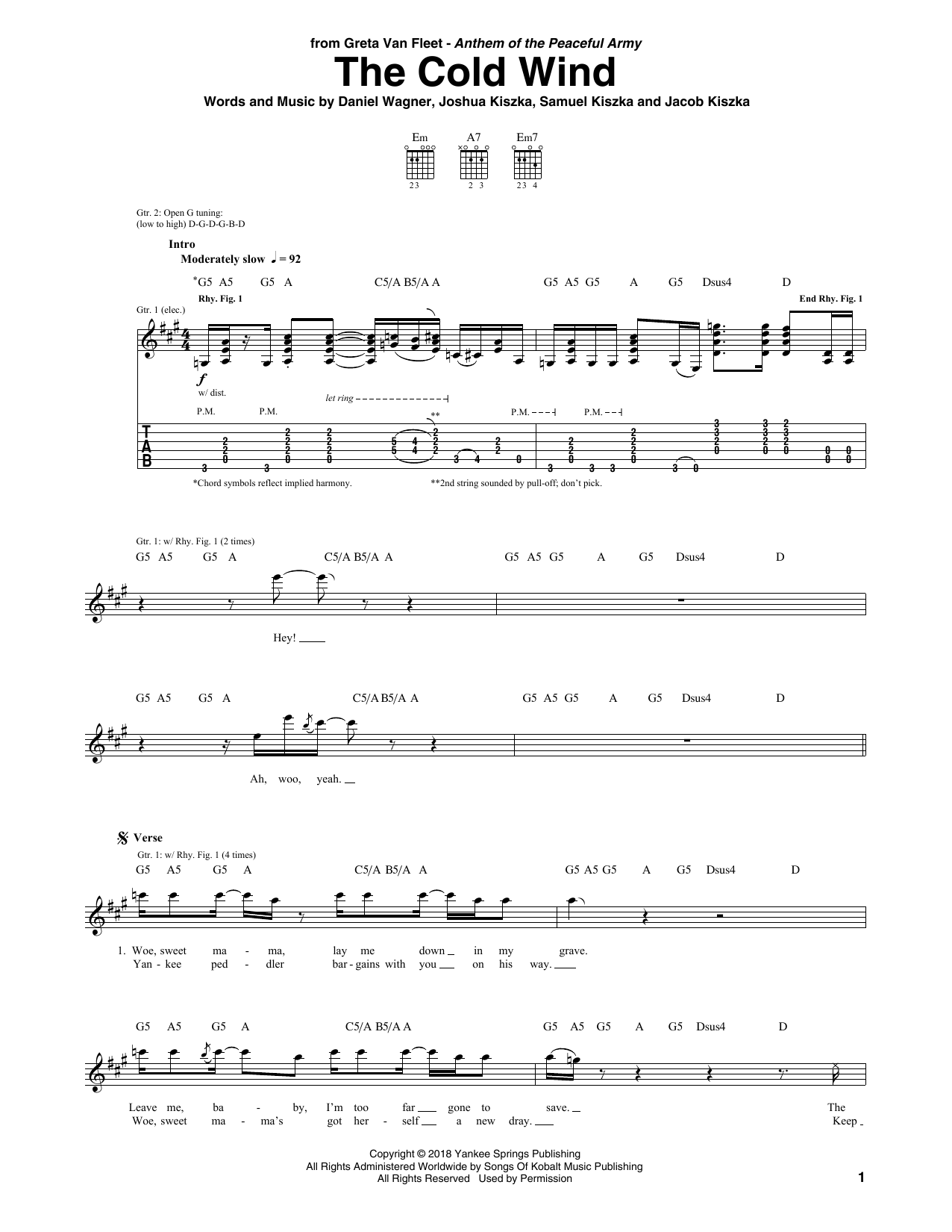 Download or print Greta Van Fleet The Cold Wind sheet music, chords and digital score arranged for Guitar Tab. This Pop score includes 8 page(s).