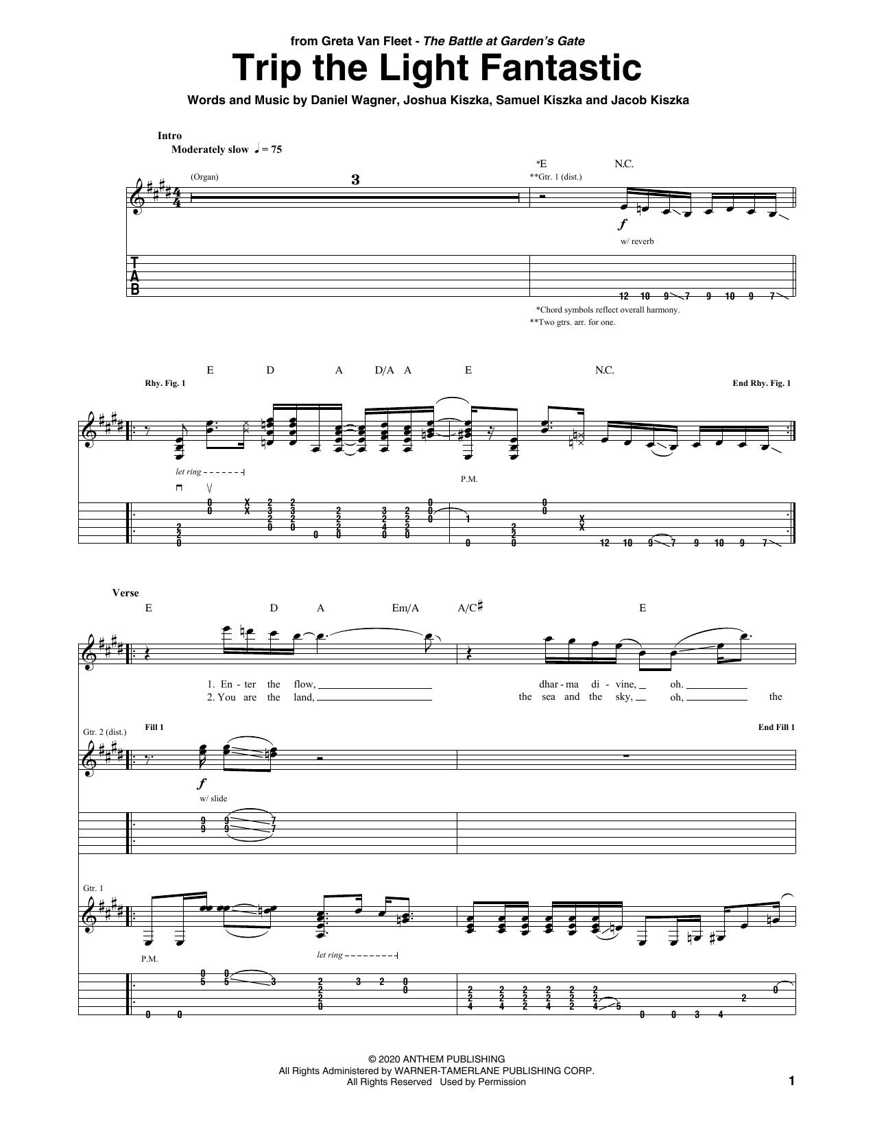 Download or print Greta Van Fleet Trip The Light Fantastic sheet music, chords and digital score arranged for Guitar Tab. This Rock score includes 6 page(s).