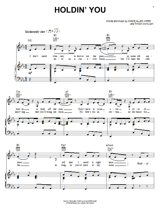 Download or print Gretchen Wilson Holdin' You sheet music, chords and digital score arranged for Piano, Vocal & Guitar Chords (Right-Hand Melody). This Country score includes 5 page(s).