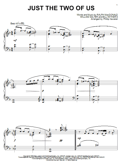 Download or print Grover Washington Jr. feat. Bill Withers Just The Two Of Us (arr. Phillip Keveren) sheet music, chords and digital score arranged for Piano Solo. This Jazz score includes 4 page(s).