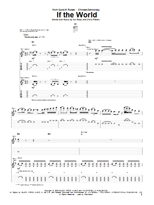 Download or print Guns N' Roses If The World sheet music, chords and digital score arranged for Guitar Tab. This Metal score includes 13 page(s).